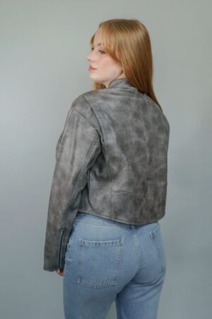 Chaqueta Corta Eco Cuero Mapache – Tono gris