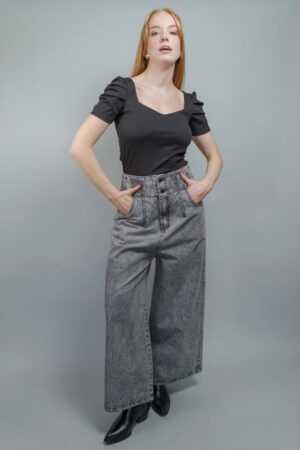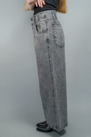 Diseño Impactante: El pantalón oversize Fátima en tono negro desgastado es la pieza clave para un estilo audaz y urbano. Con un tiro largo que aporta silueta relajada pero sofisticada, este modelo se convierte en una declaración de moda.
